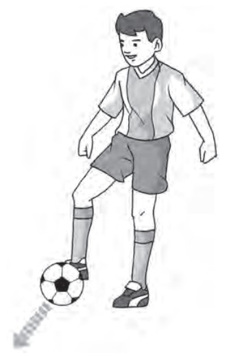 - Menggiring bola dibiasakan dengan menggunakan kaki kanan dan kiri